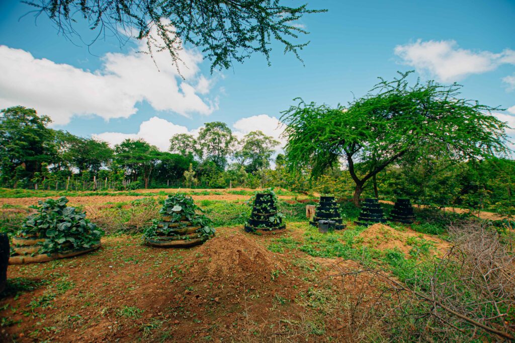 Vertical gardens in our demo farm which we use to teach farmers with.